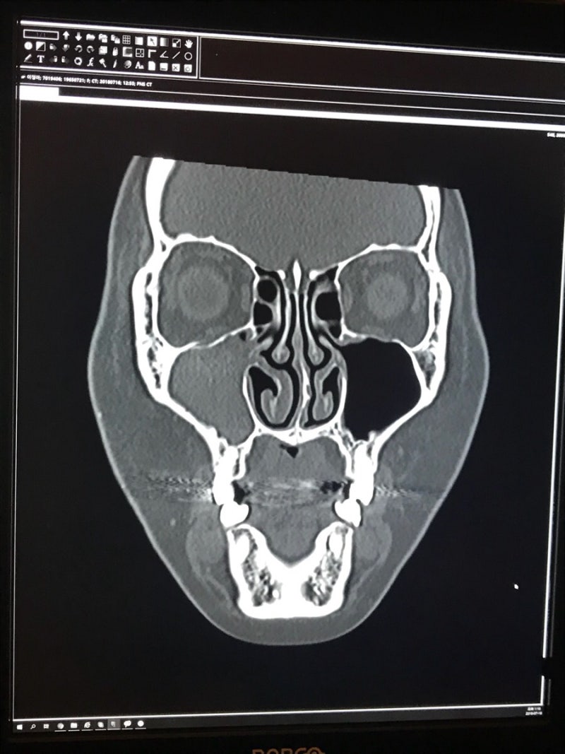 처음에는 가래를 끓이기 때문에 축농증과 전혀 관계가 없다고 생각했는데 가래도 축농증과 밀접한 관계가 있다는 선생님 말씀으로 코 쪽 CT 촬영을 하게 되었습니다.검사 시작 전에 걱정이 많이 됐는데 예전 어린 시절보다 확실히 지금은 얌전히 CT 촬영 진료를 받는 권이를 보니 걱정이 한결 덜해졌습니다.