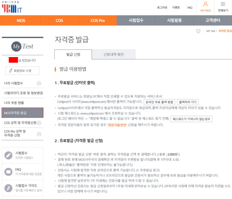구입한 쿠폰은 마이페이지>나의 쿠폰 현황>온라인 구매 쿠폰에서 쿠폰 번호와 쿠폰 비밀번호를 확인할 수 있으므로 향후 응시료 결제창에서 사용하면 된다.보통 MOS시험은 컴퓨터를 다루는 센스만 있으면 길어도 2개월 안에는 다 딸 수 있다고 하니 유효기간도 매우 넓은 편. 좋은 시험장 추천